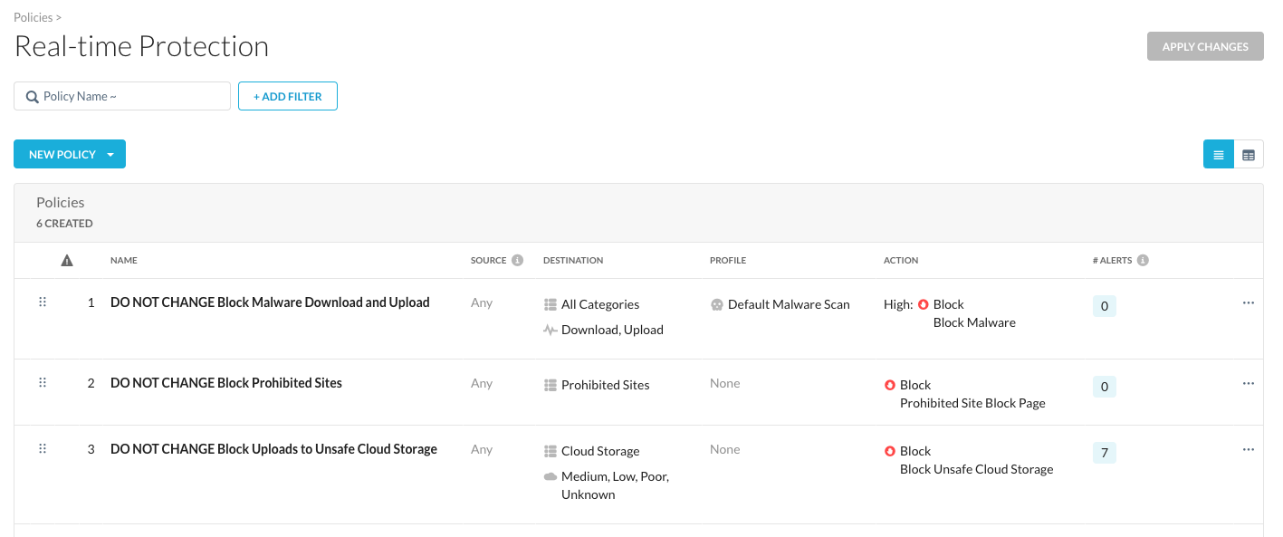 In your Netskope tenant, return to Home then navigate to Policies > Real-Time Protection. There should be some policies already (DO NOT CHANGE). Please leave those unchanged. ;-)