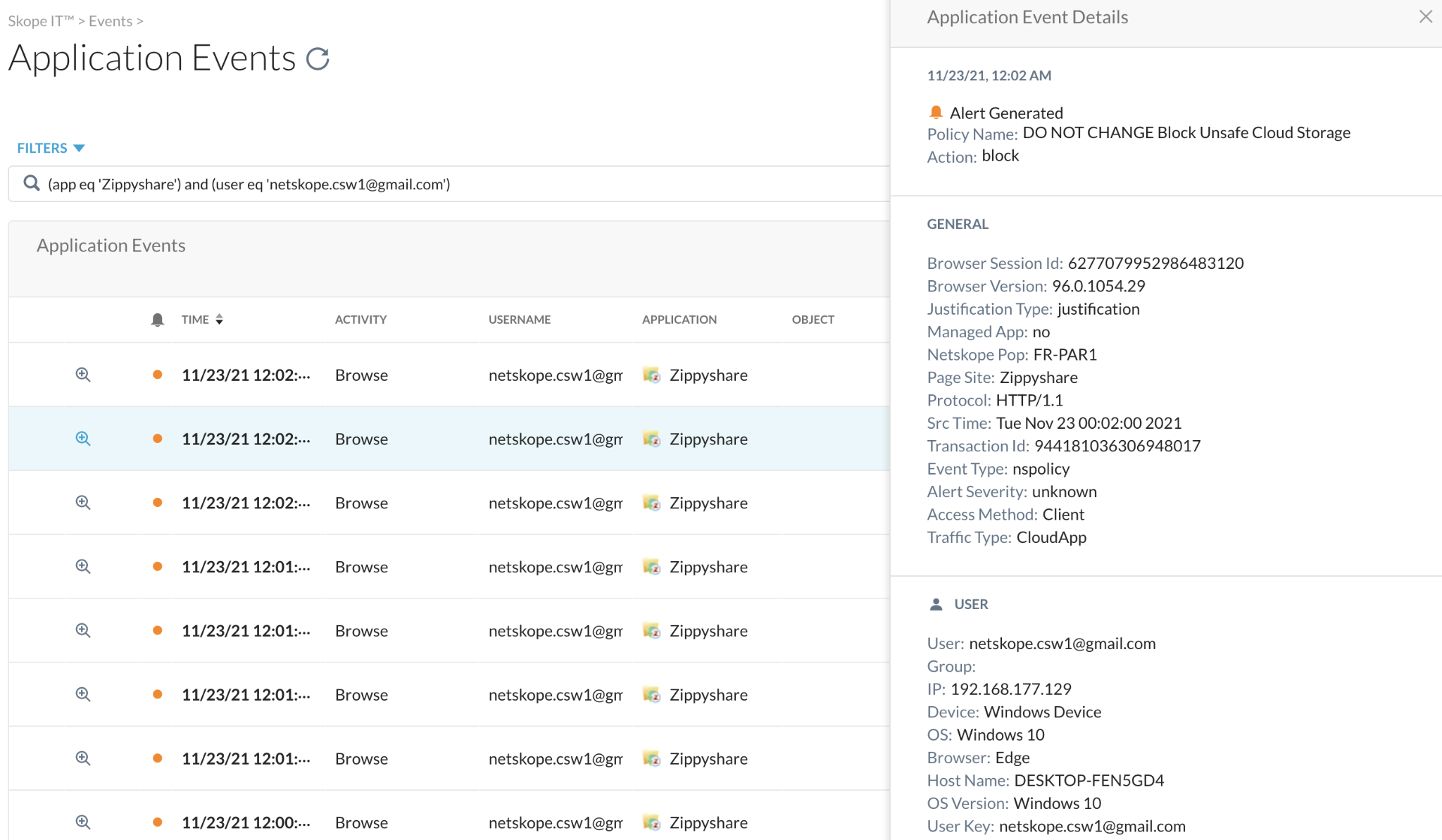 Page Events are similar to a traditional Web Proxy view and render information that is more specific to the HTTP level activity of the user.
